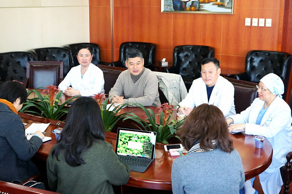 (后排从左至右)附属二院心胸外科主任郑俊猛教授、宋尔卫院长、心胸外科熊利华教授接受采访