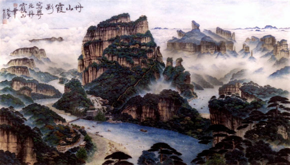 1989年彭华绘制的丹霞山北部和全域景观彩图