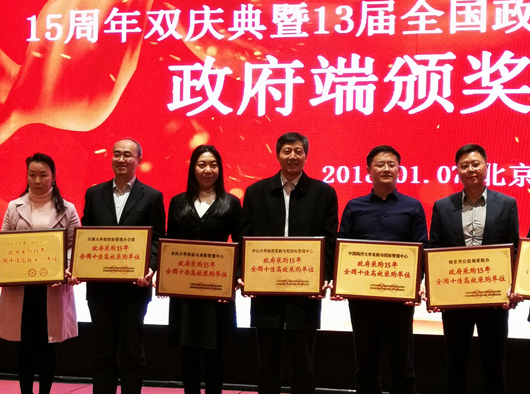 1月7日-8日,由财政部指定政府采购宣传媒体政府采购信息报联合政府采购信息网举办的“15周年双庆典暨13届全国政府采购集采年会”在北京召开。我校政府采购与招投标管理中心荣获“政府采购15年全国十佳高效采购单位”、“政府采购15年全国15佳内控制度”,教育部政府采购中心马建斌副主任进行了颁奖。本次表彰是对开云下注(中国)官网政府采购与招投标管理工作的肯定和鼓励。