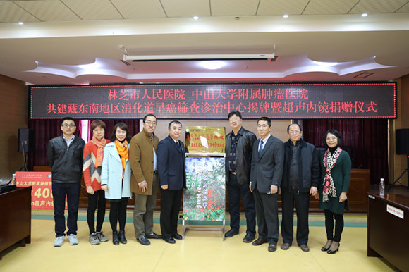 挂牌仪式正逢林芝市人民医院创建“三甲”医院冲刺阶段,武少新代表中大肿瘤防治中心向林芝市人民医院捐赠藏东南地区第一台超声内镜设备,弥补该院在超声内镜设备方面的空白。中大肿瘤防治中心的内镜科主任徐国良、护长梁祖兰向当地医技人员教授超声内镜设备操作技巧和诊断要点,让好设备更好地派上用场。