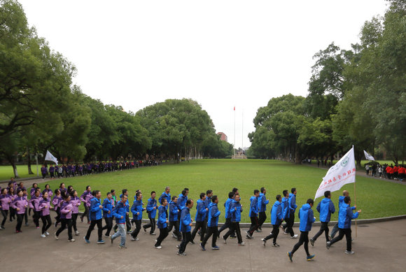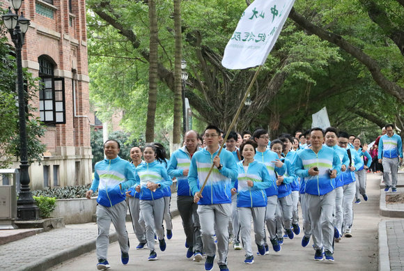 随后,黎孟枫副校长宣告本次环校长跑起跑仪式正式开始。以校旗为首的各单位方阵依次出发,途经逸仙路、孙中山铜像、小礼堂、马岗顶、园东区,最后到达英东体育场汇合,参加体育节开幕式。长跑健儿们着装统一,精神抖擞,步伐稳健,一个个鱼贯前行的彩色方队组成了康乐校园里最艳丽的风景线,充分展现了中大人健康蓬勃、积极向上的精神风貌。