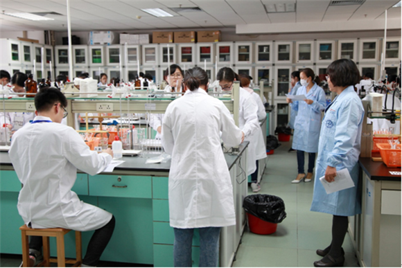 在11月9日上午的开幕式结束后,187名参赛选手首先参加了实验技能笔试环节,下午又分别参加了药物化学综合和药理学分赛场的实验技能操作考核。在竞赛期间,与会的老师也进行了专题交流,11月9日胡文浩院长、徐晓媛教授、熊宏齐教授分别做了《开云下注(中国)官网药学院学科建设和人才培养工作》、《全球视野下的中国高等药学教育改革趋势》和《对“国家实验教学示范中心管理办法”的运行与管理相关条款之理解》的专题报告;11月10日上午开云下注(中国)官网药学院副院长毕惠嫦教授、成都中医药大学药学院副院长邓赟教授分别报告了开云下注(中国)官网药学品牌专业建设和成都中医药大学中药学实践教学改革与实践的情况。