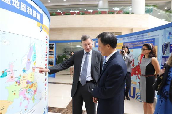 会见后,史伟大使参加了由欧盟驻华代表团、意大利驻广州总领事馆主办、我校协办的“欧盟60周年”展览开幕式。我校副校长肖海鹏在开幕式上致欢迎辞,并介绍了举办该展览的意义。肖海鹏表示,学生既是中国的未来,也是中欧未来合作的关键,希望这次展览能让他们了解更多欧洲历史和文化,为中欧未来的合作奠定基础。