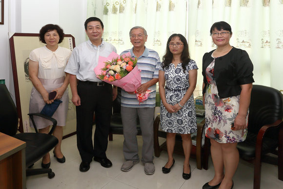 慰问团一行看望了生命科学学院林浩然院士、屈良鹄教授,化学学院计亮年院士、陈小明院士以及中文系黄天骥教授,殷切表达了广东省教科文卫工会对他们的慰问和祝福,并送上鲜花和慰问金。