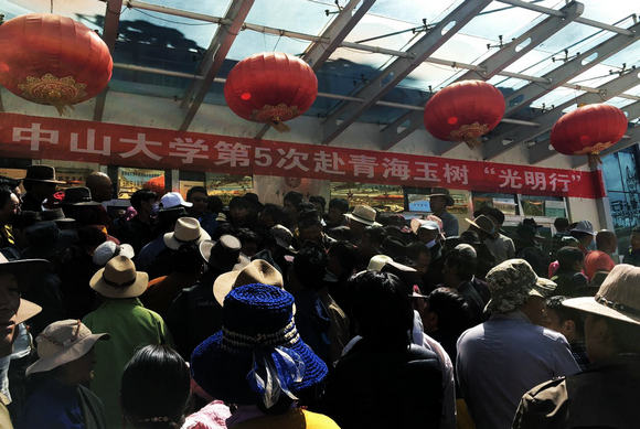 8月12日至16日,在我校党委副书记余敏斌、中山眼科中心党委书记夏丹带领下,中山眼科中心组建的17人医疗队连续第五年到青海玉树开展同心光明行活动。中共广东省委统战部民宗局调研处调研员黄琼也全程参加指导了此次光明行活动。玉树市政府及玉树地区第十世嘎多活佛为义诊做了大量宣传工作,义诊活动受到玉树各县乡的牧民热烈欢迎。