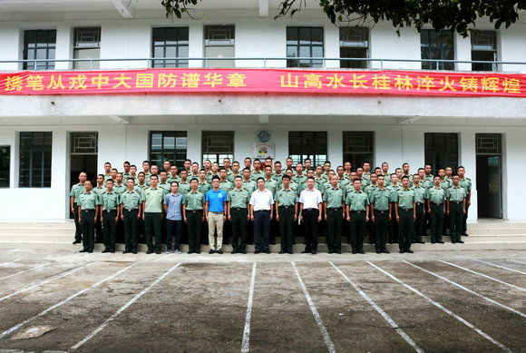 近日,我校党委副书记余敏斌、学生处副处长古添雄、校团委副书记肖力等一行前往桂林市慰问我校集训国防生,了解国防生的暑期集训情况,并与陆军特种作战学院负责人、带训骨干以及国防生进行座谈。
