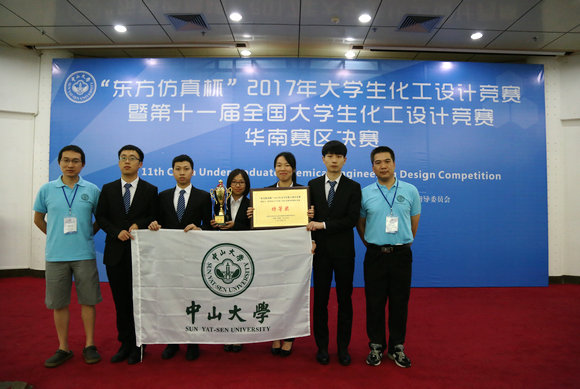 我校化学工程与技术学院作为华南赛区决赛的承办方,对该项赛事高度重视,在教务部、化学学院等单位的大力支持下,精心组织赛事。比赛营造的公平公正的竞赛环境及提供的细心周到的服务得到了与会师生的一致好评。同时,学院积极组织学生参赛,成立了以杨祖金副教授、何畅副教授为指导教师,化学学院2014级本科生钱绮明、莫春玲、李兴涛、梁炜男、谢犨纬等五位同学组成的“Sky”代表队。参赛队员在指导教师的悉心指导下,以优秀的作品设计和精彩的现场答辩脱颖而出,勇夺桂冠,获得华南赛区金奖,将代表华南赛区参加全国总决赛。
