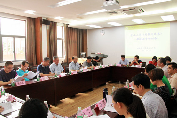 7月23日,我校教务部、马克思主义学院联合党委宣传部、学生处等职能部门,与历史学系、哲学系、中文系、政治与公共事务管理学院、社会学与人类学学院、国际关系学院和法学院等共同举行《形势与政策:习近平新理念新思想新战略》(以下简称《形势与政策》)课程教学研讨会。校党委书记陈春声、副校长黎孟枫,人文社会科学30多位专家学者和学生代表参加了会议。会议由马克思主义学院院长李辉、党委书记郑哲主持。与会领导和专家围绕习近平治国理政系列思想进课堂、《形势与政策》课程改革模式、《形势与政策》课程保障体系与推进路线、《形势与政策》课程的学理基础等相关问题进行研讨。