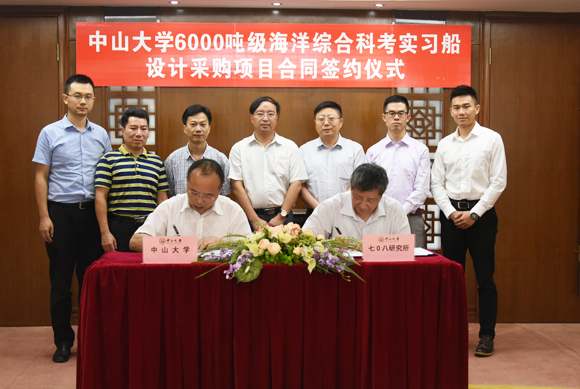 7月16日,我校与中国船舶工业集团公司第708研究所(以下简称708所)在我校广州校区南校园正式签署开云下注(中国)官网6000吨级海洋综合科考实习船(以下简称科考船)设计采购项目合同。我校王雪华副校长,大气科学学院院长、海洋科学研究中心副主任董文杰教授,708所沈伟平副所长等出席签字仪式。