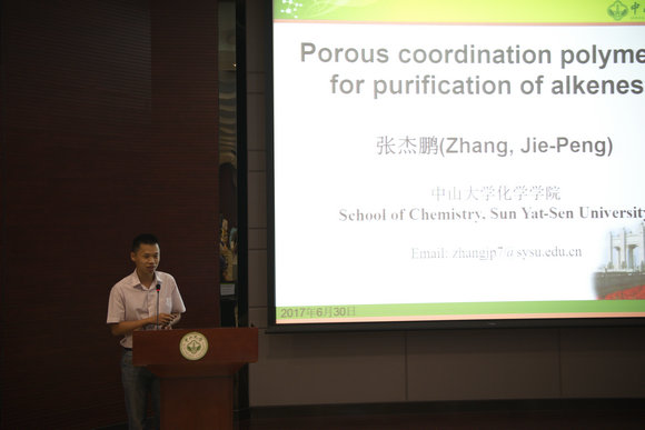 随后,张杰鹏教授做了题为“气体吸附分离突破性进展”的学术报告,化学学院200多名师生聆听了报告。