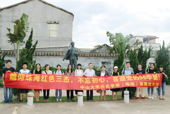 系直属党支部还组织党员、入党积极分子和教工前往珠海北山村杨匏安陈列馆、烈士陵园革命史料陈列馆、淇澳岛苏兆征故居,举行“瞻仰珠海红色三杰,不忘初心,喜迎党的96华诞”的主题党日活动。 广东是中国近现代革命发祥地,从珠海走出了我党早期杰出的马克思主义理论家杨匏安和杰出的工人运动领袖苏兆征、林伟民,史称珠海“红色三杰”。