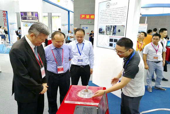 校党委书记陈春声、副校长王雪华观看物理学院唐健教授项目成果模型