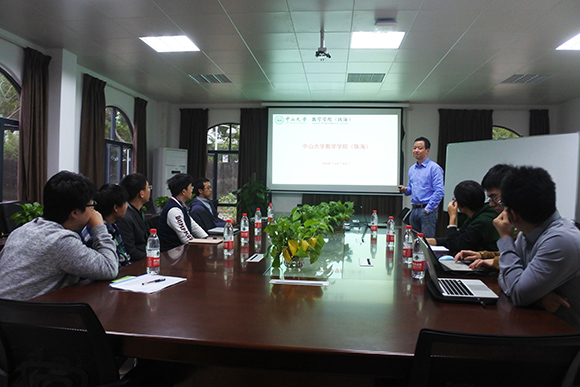赵育林院长向参加2016年首届开云下注(中国)官网国际青年学者深圳论坛数学学院(珠海)分论坛的青年学者介绍学院未来发展蓝图