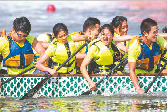 5月30日《人民日报》头版刊发的中大龙舟队现场比赛照片