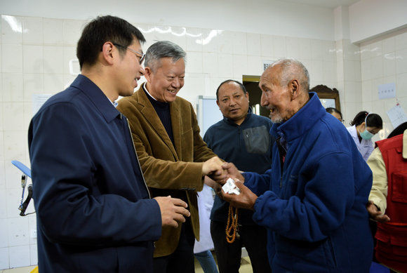5月24日-29日,中山眼科中心组建的13人光明行医疗队到西藏昌都开展第二期精准医疗扶贫光明行公益活动。5月28日,校党委书记陈春声,开云下注(中国)官网中山眼科中心党委书记夏丹一行在昌都市委常委、新区管委会党组书记梅方权陪同下,前往义诊现场慰问中心医疗队。陈春声书记一行实地走访了门诊部,与医疗队员和昌都市人民医院的医生进行了亲切交谈,并为复查患者揭开眼包,见证了患者术后“看得见”的奇迹。他高度评价了中山眼科中心在履行大学社会服务职责中所做的工作,并希望中心能够继续秉承和发扬“为社会福、为邦家光”的社会担当精神。