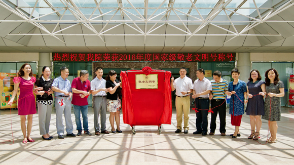 6月6日上午,附属第五医院2016年度全国卫生计生系统“敬老文明号”揭牌仪式在医院门诊门口举行。我校工会常务副主席吴京洪、副主席李烨,珠海市卫计局副局长黄林富,附属第五医院院长单鸿、党委书记林伟庭等班子成员,以及老年病科主任薛青和相关职能部门负责人共同出席了揭牌仪式。