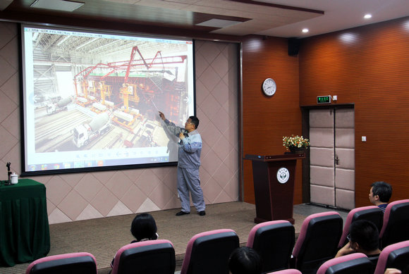 港珠澳大桥岛隧工程是一项集桥、岛、隧为一体的跨海通道,是中国从桥梁大国走向桥梁强国的里程碑之作,是国家基础设施建设走向世界的又一扇窗口,堪称一张新的国家名片。讲座伊始,师生党员们观看了港珠澳大桥建设历程宣传片,直观感受了这一世纪伟大工程鼓舞人心的力量。韦东庆副书记激情满怀地向在场师生介绍了港珠澳大桥工程中的重重挑战与种种突破,传递了港珠澳大桥建设者们攻坚克难的信心与勇气,振奋人心。
