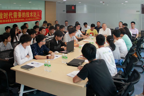 5月20日,罗俊校长受邀出席了数据科学与计算机学院软件工程(移动信息工程)1509、1510团支部的“一学一做”主题团日活动,活动主题为“学习习近平总书记重要讲话,做时代需要的技术达人”。活动中,优秀移动学子分别向罗俊校长展示了支部成员的技术科研作品和团小组学习成果,罗校长对同学们取得的成果予以肯定和赞扬,并寄语同学们在踏踏实实学好技术本领的同时,更要有崇高的信念理想追求与担当精神。