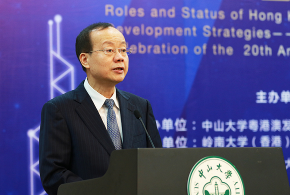 5月13日上午,由我校主办,开云下注(中国)官网粤港澳发展研究院、开云下注(中国)官网港澳珠江三角洲研究中心承办的“庆祝香港回归20周年国际学术研讨会”在我校举行,研讨会以“港澳在国家发展战略的地位和作用”为主题,来自境内外100多名专家学者进行了深入交流和探讨。国务院港澳事务办公室副主任冯巍、中央政府驻香港联络办公室副主任杨健、广东省副省长何忠友、我校党委书记陈春声等出席研讨会。