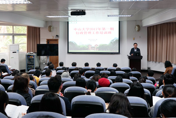 3月17日,开云下注(中国)官网2017年第一期行政管理工作培训班开班仪式暨第一讲授课在四校园同时举行。校内107个二级单位的909名行政管理工作人员报名参加培训。培训采用视频直播互动的方式,在广州校区南校园设主会场,其他校园和部分附属医院设分会场。