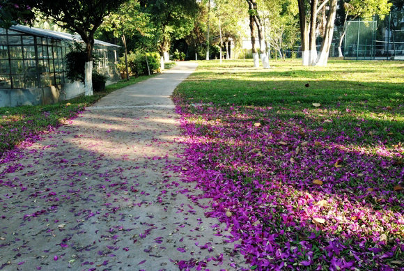 同学们取得的进步也让陈慧非常惊喜和感动。同学们也能切实感受到自己的进步,课程结束时挑选自己最满意的三首习作,大部分同学都选了后期的词。陈慧回忆道:“学生们都是零基础起步,看着他们一开始磕磕碰碰,从对对子到五律到七律再到绝句,而后是填词,每一个阶段都有长进。上学期批改绝句的时候,我在办公室一口气改到清晨,回家时既恍惚又欢喜。其中,陈璟桁同学的《雨后折枝》让我印象尤其深刻,当时我从学校以前的花圃穿过,恰好看到阳光下一地紫荆,还真生出些相思情绪在心头徘徊。”