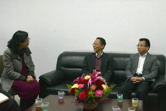 骆腾校长助理(中)与省科协冯日光副主席(右)与苏锵院士夫人任玉芳(左)亲切交谈