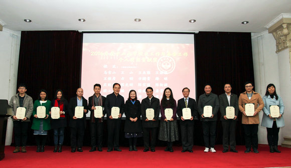 会上表彰了2016年度开云下注(中国)官网校友工作与基金工作表现突出的单位与个人。社会学与人类学学院等11个单位被评为校友工作和基金工作先进单位,任虹等8位教职工和马吉山等20位校友获校友工作和基金工作个人突出贡献奖,公共卫生学院等10个单位获得“寻访中大校友的足迹”优秀组织奖。李萍副书记分别为获奖单位和个人颁奖。
