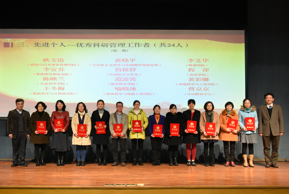 朱熹平副校长、程焕文校长助理为获得优秀科研管理工作者的先进个人颁奖