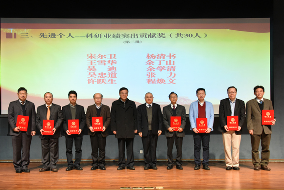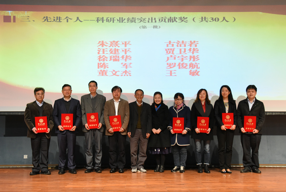 罗俊校长为获得科研业绩综合激励奖的先进单位颁奖