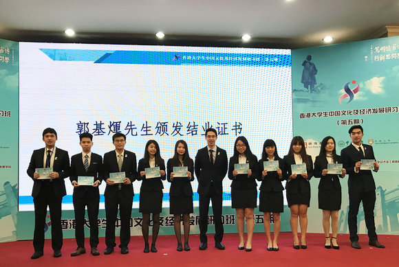 2016年12月30日下午,第五期香港大学生中国文化及经济发展研习班在我校广州校区南校园怀士堂落下帷幕。结业典礼上,马骏副校长代表我校致欢迎辞,新鸿基地产执行董事、郭氏基金负责人郭基辉先生发表讲话,来自香港中联办、省政协、广东海外联谊会、广东省青年联合会、香港广东青年总会等10余名嘉宾出席了典礼。