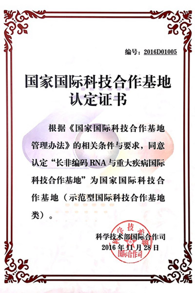 2016年11月28日,首都北京传来喜讯,由孙逸仙纪念医院宋尔卫教授负责的“长非编码RNA与重大疾病国际科技合作基地”获得国家科技部认定。该基地的认定,实现了孙逸仙纪念医院国家级科研基地零的突破,标志着孙逸仙纪念医院科研平台水平有了较大的提升,将为孙逸仙纪念医院今后开展深度国际科技合作与交流提供平台保障。