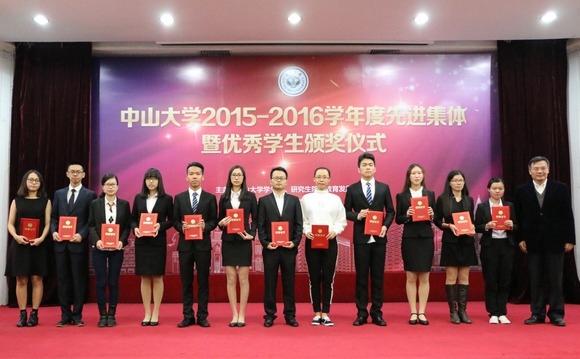 颁奖大会表彰了获得2015-2016学年度优良学风班、优良标兵班的班级,获得2015-2016学年度国家奖学金、国家励志奖学金、校优秀学生奖学金、逸仙励志奖学金、各类捐赠奖学金以及优秀研究生奖学金的学生。