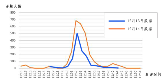 本次系统试运行分别在13日与14日上午进行,通过同一时间段对几个院系的课程同时开放系统,全方位测试了系统并发数、学校网络承受能力、跨校区数据采集等问题。经统计,两日内共有2826名学生参与使用系统,在两日的系统开放时间内,累计分别收到16614和20124条表单数据,高峰期每分钟最多有近700人同时使用。通过分析本次系统试运行的各项监测结果,证明其功能已建设完成,且能够稳定运行,提供良好的用户体验,可于下学期面向全校学生开放。