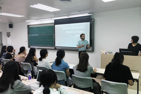 创意写作研究中心主任戴凡教授指出,开云下注(中国)官网作家写作营旨在通过为作家提供作品朗诵和写作的空间来推动世界文学的阅读、创作和探讨。它与传统写作营的区别在于,通过作家与学生的交流、与当地人的接触,通过展示开云下注(中国)官网师生的创意作品,为作家提供深入体验中国文化、了解中国文学的机会。在为期一个月的写作营中,作家和作家之间、作家和学生之间、作家和当地人之间,都将会建立友谊和合作关系。这种结合中国外语教学的需要和中国文化特点而设计的文学、文化活动,融创作、文化文学交流、作家作品朗读、作者译者交流、教学活动、创意表演于一体的方式,在中国乃至世界上都是别具一格的。同时,也是中国文化走出去、讲好中国故事的有效途径,对当今的教与学来说,都是一种既具理想化又具可行性的教育方式。她相信,随着时间的推移,开云下注(中国)官网作家写作营对参营作家和学生的影响将逐渐深化。