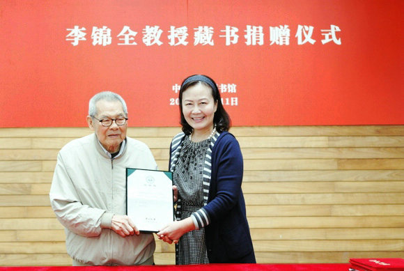 12月11日上午,李锦全教授藏书捐赠仪式在我校图书馆举行。校党委副书记李萍,校长助理、图书馆馆长程焕文,哲学系退休教授李锦全,哲学系党委书记于海燕,哲学系教授李宗桂、张永义,校出版社总编辑周建华等出席仪式。