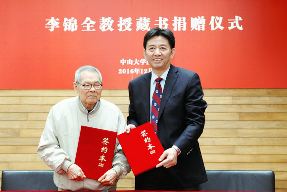 李锦全教授(左)与程焕文馆长(右)签署捐赠协议
