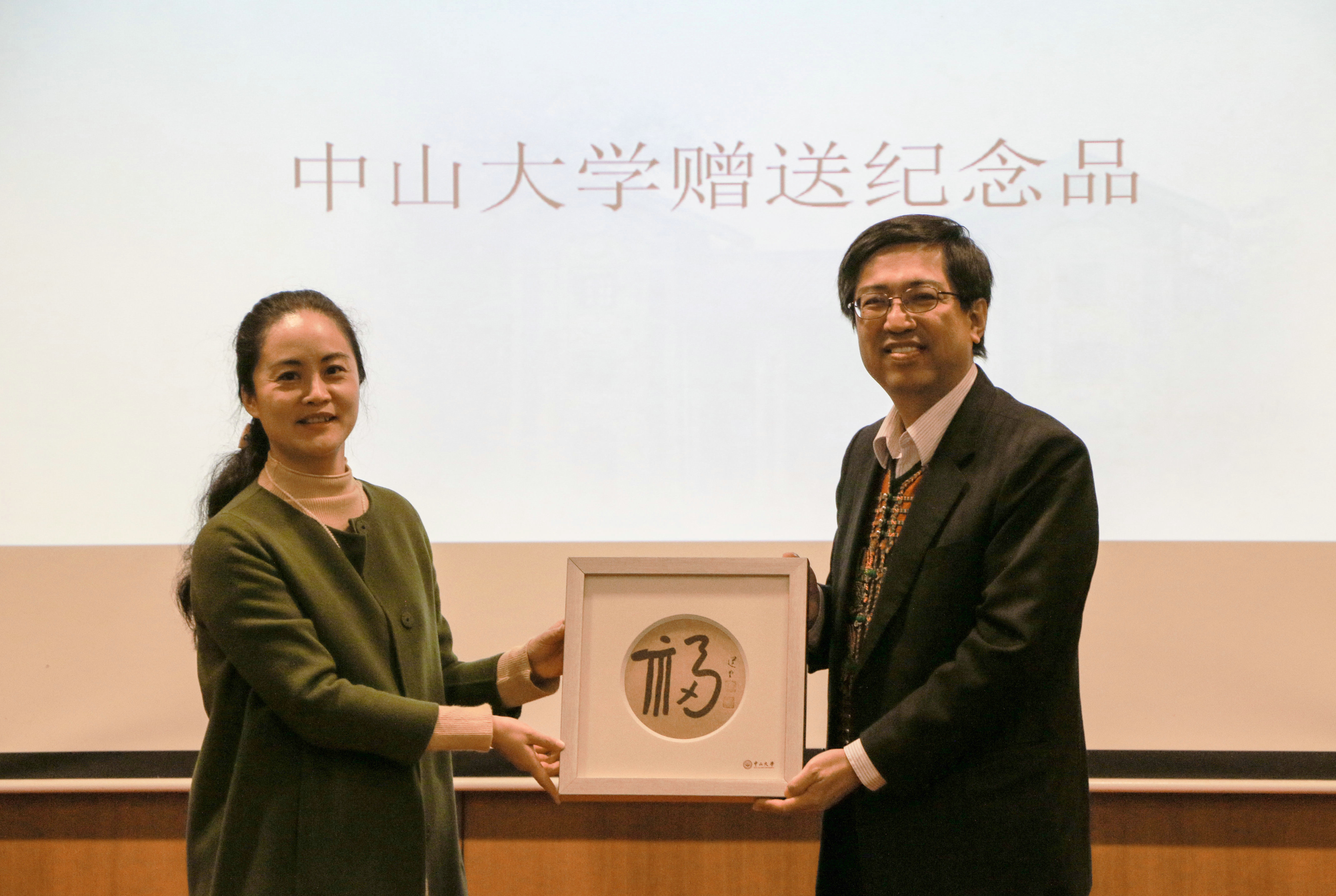 陈振川执行长和颜光美副校长为获奖者颁奖。我校教育发展与校友事务办公室副主任、教育发展基金会副秘书长黄源穗代表学校向陈振川执行长赠送纪念品。