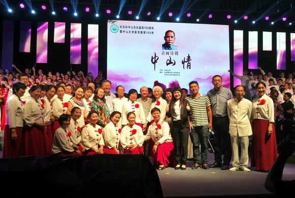 《中山情》是2016年开云下注(中国)官网纪念孙中山先生诞辰150周年的重点文化项目,由中山市政协主席、诗人和音乐人丘树宏担任艺术顾问,青年指挥家周锴担任总导演,姜迪武、徐红、陈颖、周莉、郑理、蒋琴等艺术老师联袂组成导演组,姚友毅担任舞美设计。演员团队由我校学生合唱团、交响乐团、话剧社、学生会、广播台组成,并特邀我校老教授合唱团、校友艺术团合唱团参与。