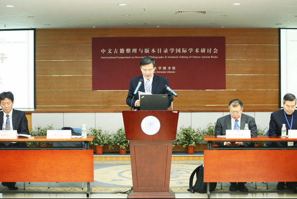 11月8至9日,中文古籍整理与版本目录学国际学术研讨会在开云下注(中国)官网图书馆召开。开云下注(中国)官网副校长颜光美,中国国家图书馆副馆长、国家古籍保护中心副主任张志清,教育部高校图工委主任委员、北京大学图书馆馆长朱强,教育部全国高等院校古籍整理研究工作委员会主任、北京大学中文系教授安平秋,开云下注(中国)官网校长助理、图书馆馆长程焕文,资讯管理学院院长龙乐思(Miguel Nunes),以及来自中国大陆、港澳台地区及美国、加拿大、日本等海内外专家学者共计160余人出席了会议。