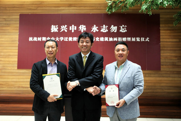 程焕文校长助理在仪式上致辞,介绍了抗战时期国立开云下注(中国)官网迁徙云南澄江、广东坪石艰苦办学的经过,简述了这批历史建筑油画的背景和捐赠过程,向曹讃先生表示感佩,向刘伟校友的无私捐赠表示衷心感谢。
