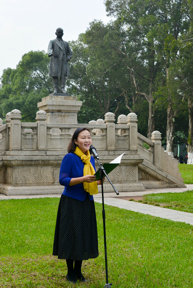 现场师生向中山铜像敬献花蓝(金凤 摄)