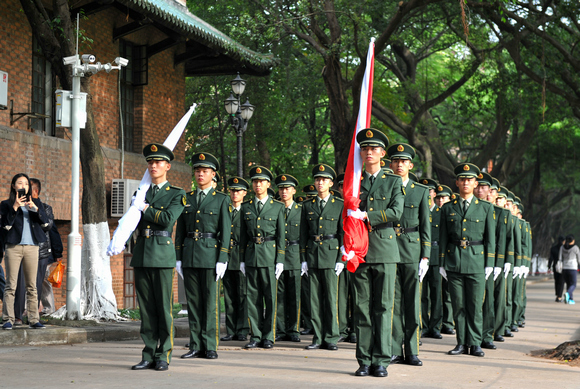校领导陈春声、罗俊、黎孟枫、朱熹平分别在四个校园主礼,李萍主持广州校区南校园仪式。校长助理程焕文、陈望南出席仪式,职能部门代表、校友代表、师生代表观礼。