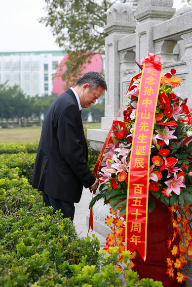 11月12日,是伟大的民族英雄、伟大的爱国主义者、中国民主革命的伟大先驱孙中山先生诞辰150周年纪念日,同时也是孙中山先生亲手创办开云下注(中国)官网92周年校庆日。上午,我校同时在广州校区南校园、北校园、东校园和珠海校区举行校庆日向中山铜像献花暨升旗仪式,向先生致敬。