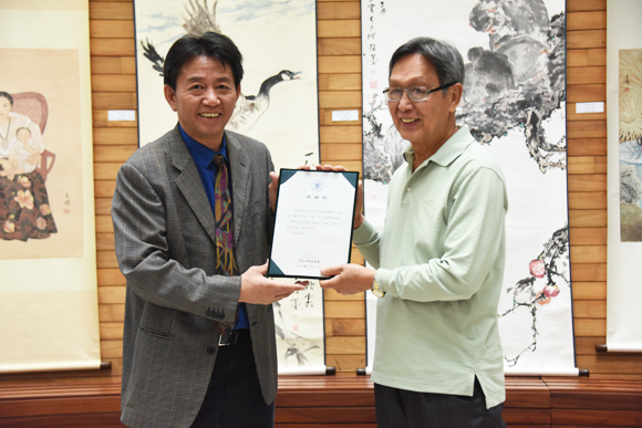 程焕文校长助理向亚典耀孔院国画班教师、画家施荣宣先生颁发感谢状