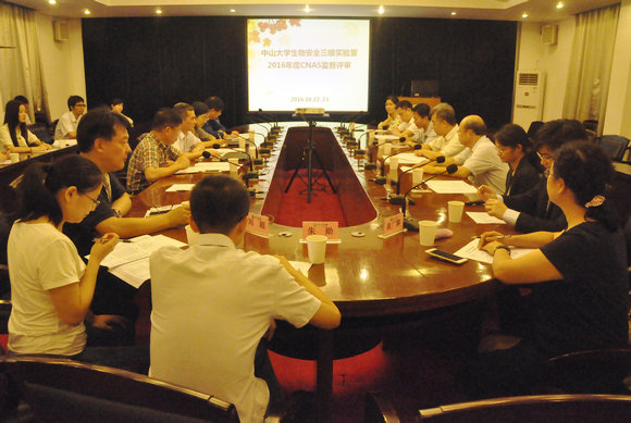 10月22-23日,我校生物安全三级实验室接受了中国合格评定国家认可委员会(CNAS)组织的国家级资质认定认可年度监督评审。我校副校长朱熹平、设备与实验室管理处处长陈敬德、中山医学院党委书记吴忠道、生物安全三级实验室曾谷城主任及生物安全办公室等相关负责人出席了评审会议。