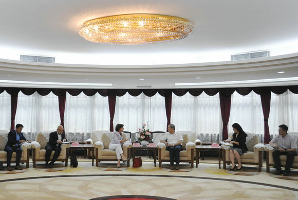 罗俊校长(右三)会见郭媚瑶总领事(左三)一行