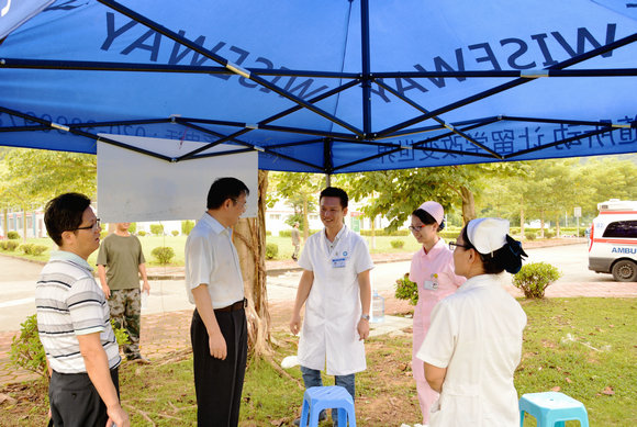 9月6日,我校颜光美副校长在学生处处长莫华、副处长古添雄,相关职能部门负责人等一行的陪同下看望了正在军训的2016级新生和教官,给予他们亲切的慰问和关怀。