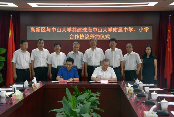 9月1日,我校与珠海市高新区共建珠海校区附属中、小学合作协议签约仪式在珠海市高新区举行。校党委书记陈春声,校长罗俊,校长助理程焕文、杨清华、骆腾,珠海市教育局局长钟以俊,珠海市高新区党委书记张宜生,珠海市高新区党委副书记、管委会主任杨川,高新区管委会副主任赖晓斌、周火根等出席仪式。