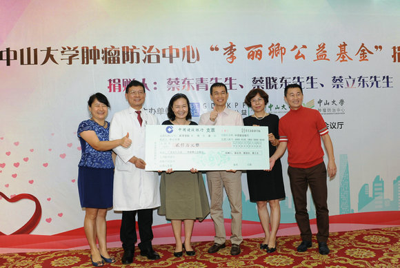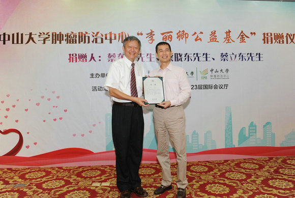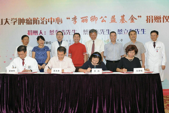 捐赠仪式上,徐瑞华主任衷心感谢蔡氏三兄弟及广东省长江公益基金会对肿瘤防治中心事业发展的关心和支持。他强调,“李丽卿公益基金”将激励肿瘤防治中心的医务人员不辱使命,以实际行动践行中山先生“为社会福,为邦家光”的谆谆教导,在医疗科研的道路上攻坚克难,传递蔡氏三兄弟及长江公益基金会的大爱精神,为建设健康中国贡献力量。肿瘤防治中心将在人才梯队搭建完成的基础上构筑人才高地,培育肿瘤医学协同创新中心,并筹建肿瘤精准医学研究平台,以转化医学研究为纽带,结合“三个面向”的指引,实施肿瘤防治领域的科技攻关;进一步强化单病种多学科规范化诊疗,提升医疗质量,占领医疗技术高地,践行人文医疗服务,在扩大中大肿瘤医疗品牌影响力的同时造福社会;为社会输送具有“德才兼备、领袖气质、家国情怀”的肿瘤学高层次创新型及应用型人才。