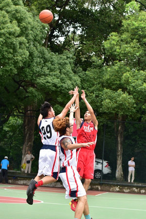 作为十大赛事之一的篮球赛,从3月中旬起各院系学生中篮球爱好者自由组队报名,共有49支男子篮球队,38支女子篮球队,1044余名中大学子参与到本次比赛中。经过各校区历时两个月、205场的预赛,5月21日-22日在广州校区南校园迎来了期待已久的篮球总决赛火热开场,现场不仅有篮球宝贝带来青春洋溢的啦啦操表演,而且有余敏斌副校长开球互动,瞬间点燃全场,受到观众的热烈欢迎。决赛场上,12支男子篮球队,10支女子篮球队不仅切磋技艺、比拼体力耐力,同时还展现出极佳的团队协作能力和团队领袖组织领导能力。篮球场内助阵观众的欢呼声、喝彩声此起彼伏,引得篮球场外行人纷纷驻足观看。